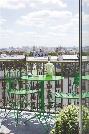 没有大房子没关系,只要有一个小小的阳台就可以享受阳光了。两把小尺度的铁艺户外椅和茶几,不占据太多的空间,静静地摆在阳台一角。鲜艳的绿色吸引了所有的目光,让原本平淡的阳台也“亮”了起来,法国式的浪漫和精致就在那一瞬间冒出来。小茶几上摆着心仪的咖啡壶和小点心,一个人的下午在这里发呆,真的有一种别样的体验。