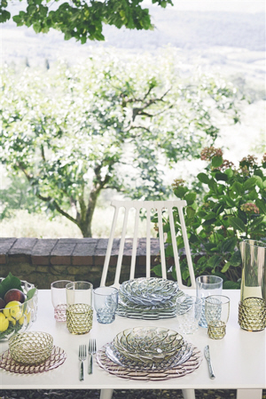 既然选择在户外,那么就不能凑合。享受新鲜空气的同时,餐桌上的风景也让人快乐。配套的盘子、托盘、杯子、碗、水瓶,透明的材质、缤纷的色彩,让餐桌也梦幻起来。温和的透明色彩,精致而容易搭配,让餐桌更加充满创意。伴着些许微风,听着慵懒的音乐,看着盘子与色彩的搭配,创造出古灵精怪又优雅得体的款式,户外的气氛是不是就变得充满创意又精致考究呢?