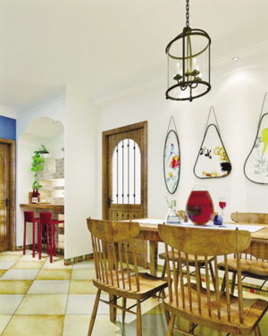 “时空门”是想象力的时空门,而主卧就是李亚东精心设计的孕育想象力的摇篮,它以白色的无纺布墙纸打底,搭配上一整面海蓝色的背景墙,形成一种拉动的地中海色彩氛围。这时,再适时地加上一张铁艺藤制躺椅,坐在其上,闭上眼睛,微风拂来,仿佛是懒洋洋地在地中海边上晒太阳,享受海风的按摩。