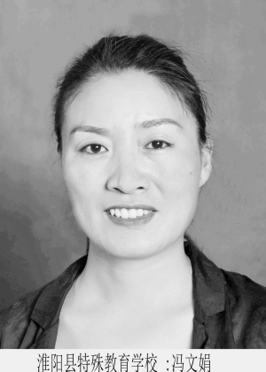 5.冯文娟,女,36岁,淮阳县特殊教育学校语训教师。她始终把“爱”字记在心中,无微不至地去关怀每一个学生,孩子们吃住在校,生活不能自理,她就担起了父母和老师的双重任务,帮他们打饭、洗澡、洗衣服、接送孩子回家,用无私的爱去温暖感化学生,把一个个有着生理和心理双重缺陷的学生引上正常的生活轨道。她先后被评为省优质课教师、省优秀教师、省特殊教育先进个人,市优秀班主任。