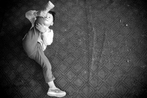 5岁孩子栾豪豪在训练中(5月26日摄)。安徽省颍上县三王村乡村杂技学校成立于2007年。每年都有百余名农村孩子来到这里学习杂技。