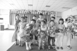 为庆祝“六一”儿童节,河南亿星实业集团的职工为子女精心准备了一台“环保时装秀”。孩子们穿上和父母一起用废弃纸盒、彩纸、挂历、布条等创作而成的时装走上T台,赢得掌声一片。 晚报记者 李伟 摄