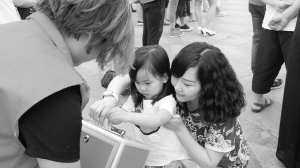 当日17时许,活动现场,身穿感恩者联盟服饰的爱心商家带头给张玲玲捐款献爱心,他们手拉手演唱的歌曲《相亲相爱一家人》更是感动了围观市民,大家踊跃捐款,将一笔笔带着爱心的善款投进捐款箱(如图)。他们中有牙牙学语的孩子, 有天真烂漫的学生,有善良淳朴的老人,有游走于市井的小贩……一位残疾人把钱投进捐款箱后说:“谁都有困难的时候,能帮多少就帮多少,尽咱的心吧。”闻讯而来的周口晚报小记者们,不仅现场表演了舞蹈,还把自己的零花钱投进捐款箱。“我们今天来到这里,想呼吁更多的爱心人士来帮助张玲玲大姐姐,希望她能够早日康复。”小记者李小乐说。