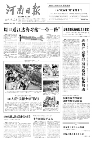 “在‘一带一路’大背景下,我们将加快融入国家主水网,增强中原经济区的综合交通优势。我们有信心把周口港打造成内河国际港口,成为连接长三角地区的‘桥头堡’。”周口市市长刘继标说。