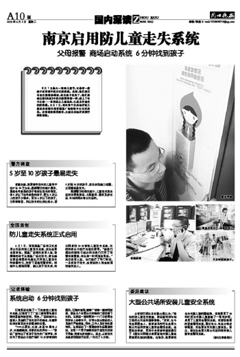 南京启用防儿童走失系统