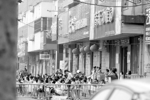 附近一名商户说:“孩子跳早操把人行道都挡上了,让行人咋走?只能上机动车道和车抢道!”