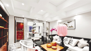 说起传统中式,必定绕不开红木雕刻家居,但业主事先与设计师沟通时,表示不想给空间加上这样沉重的包袱。于是设计师王勤俭在家具的材质上动了点心思,让“美人的旗袍变轻”,客厅则是重头戏。