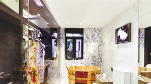 书房的设计可以算是古色古香了。方格的书柜、方正的木桌,还有经典的圈椅,加上围棋、水墨画和兰花的点缀,书房似乎成了古装剧里的场景。但设计师并非在临摹古代的书房,他稍变手法,把地板做成了以帕斯高灰打底,穿插水晶白线条的剪拼式地板,给人暗香浮动的感觉。