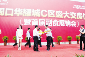 5月30日,周口华耀城C区交房仪式暨首届副食展销会在周口华耀城营销中心广场举行。周口华耀城C区于2014年5月20日开工建设,经过一年的紧张施工,已经具备交房条件。交房仪式现场,上百位业主同时收房、验房,上百家副食商家参与展销盛会,热闹非凡。当日完成交房上百套。