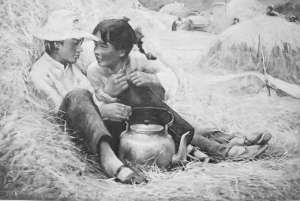 而此时,田野一片繁忙景象,割麦子的、拉麦子的、碾麦子的、扬麦子的,农民不知疲倦地忙碌着。同样的烈日,同样的麦收,对于他们好像是一种享受。汗水浸透了我的衣衫,酸痛感充满全身。我幻想,有一天成为城里人,再也不受这苦。一心不可二用,正做美梦的我被镰刀划了个口子。鲜血流出,我大声叫疼,母亲第一个来到我身边,心痛地用她的唾液给我的伤口消毒,并让我到地头休息。我低着头来到地边,喝了一口水,疼痛渐渐消失,完全可以再去割麦,但想想那份痛苦,又坐下了。当最后一陇麦割完我才站起来。母亲走到我身边,用她那满是老茧的手,抚摸我的脸说:“峰,还疼不疼?”我羞愧地低下头说:“不疼了。”俯仰之间,我忽然发现母亲包头的毛巾不知何时缠在手上,几乎被鲜血浸透了。泪水滴落在母亲手上。她也感觉到,但只是轻轻擦拭掉后说:“孩子,馒头好吃,割麦难,甜蜜要从苦中来,好好学习,希望你们将来不要再受这份罪。”