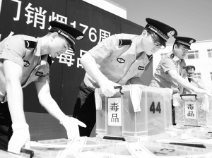当日,天津市举行纪念虎门销烟176周年暨2015年集中销毁毒品活动,集中销毁破案缴获的各类毒品547.43公斤。新华社记者 张晨霖 摄