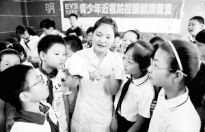 6月4日,合肥市望龙学校学生在聆听眼科医生讲解眼睛构造。