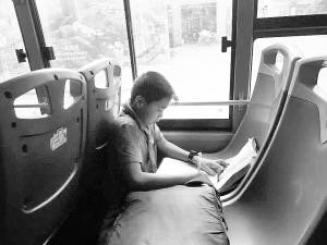 小男孩趴在公交车上写作业,在给我们带来感动的同时,也带给我们更多的思索。为小学生减负,是否应从现在做起?