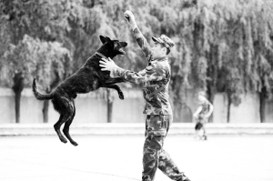 日前,全国公安边防部队第17期警犬训导员培训班在黑龙江省边防总队哈尔滨警犬训练基地开班,来自全国各地的警犬训导员将进行为期4个月的专业培训。培训结束后,警犬训导员将带着自己训好的警犬回到边防一线,承担边防缉毒、缉私、防爆、反恐、护卫等任务。新华社记者 王凯 摄