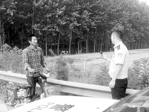 李警官对该男子进行了批评教育(如图),然后将该男子和他的电动自行车一同安全送下高速公路。