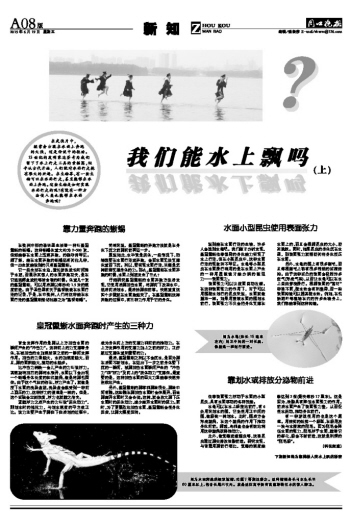 在武侠片中,经常会出现在水面上奔跑的大侠,这是传说中的轻功。15世纪的发明家达芬奇为我们留下了水上行走工具的素描图,似乎从古代开始,人们就对水面行走抱有很大的兴趣。在生物界,有一些生物可以在水面行走,甚至能够在水面上奔跑。这些生物是如何实现水面行走的呢?有没有一种方法使人类也能够在水面奔跑呢?