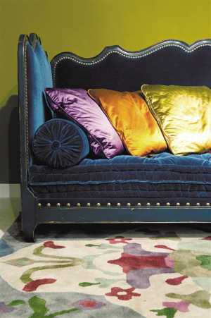 海是宽广的,让人心生敬畏。深海则是神秘的,那里有太多的未知。无论是哪种状态的海,都让人有舒爽的凉快体验。和天空的纯净相比,大海的湛蓝则更多了一些“怀抱”的感觉。如果家里能有一款如此的蓝色沙发,舒适的面料和视觉的刺激,是不是让人有身处大海怀抱的错觉呢?复古的造型、做旧的框架,再搭配几个颜色鲜艳的靠垫,异域风情中散发着浓浓的神秘气息。