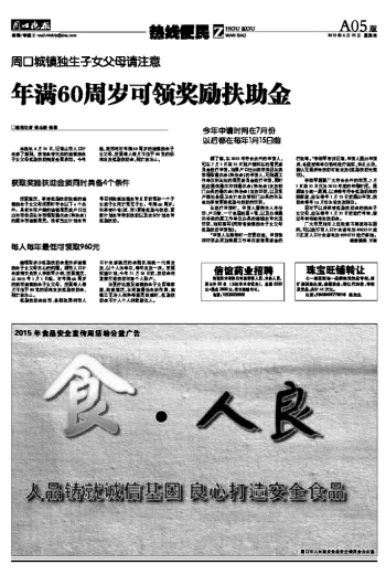 年满60周岁可领奖励扶助金