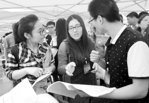 当日,为期两天的河南省2015年普通高校招生咨询活动在河南农业大学、黄河科技学院举行。国内众多高校的招生工作人员与考生和家长面对面交流,解答关于招生政策、志愿填报、专业选择等方面的问题。活动吸引了众多考生和家长冒雨参加。新华社记者 李安 摄