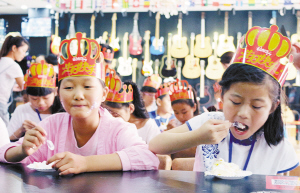 在接下来的益智游戏中,小记者开心地玩起来。抢凳子、正话反说、我来比划你来猜……小记者丰富的想像力和有趣的动作表演引发阵阵笑声……当然,生日会的重头戏莫过于享用美味香甜的蛋糕,小寿星一边分享美味,一边相互交流,尽情享受生日带来的快乐。