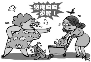 近日,成都廖女士带着爱犬在小区散步,不料小狗与婴儿车相撞,疼得嗷嗷直叫。廖女士遂与推婴儿车的梁女士发生争执,她觉得婴儿车碰了狗,应该道歉。而梁女士认为,哪有人跟狗道歉的道理?双方不欢而散。此后双方又几次发生激烈争吵,还两度闹到派出所。小区居民也因争吵分为两派,爱狗与爱宝宝者各不相让。