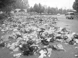 6月29日,记者在周口市区莲花大道与富民路交叉口看到,这里垃圾都堆成山了,占去大半个路面。附近居民李女士对记者说:“这些垃圾已堆在这里很长时间了,有环卫工人拉来的,也有饭店员工开着机动车送来的。你看,都快把路面占满了!希望有关部门能尽快前来清理。”晚报记者 摄