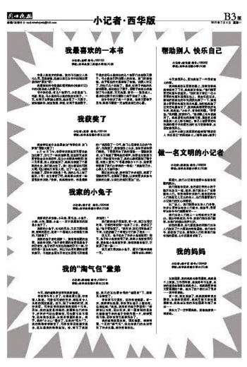 我的“淘气包”堂弟我最喜欢的一本书我的妈妈我获奖了帮助别人 快乐自己我家的小兔子做一名文明的小记者