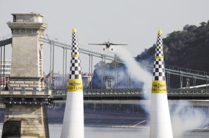 当地时间7月5日,奥地利选手汉纳斯·阿奇在比赛中。当日,在匈牙利首都布达佩斯举行的2015年红牛特技飞行世界锦标赛布达佩斯站正赛中,阿奇夺得冠军。新华社发