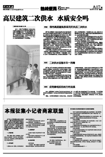 高层建筑二次供水 水质安全吗