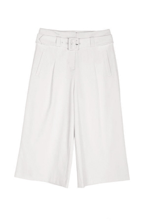 白色阔腿裤 将当下最火的两个时装元素阔脚裤和纯白融合在一起,Chic感与Normcore造型的好搭性不言而喻,自带一条纯白色的腰带,决心一白到底。