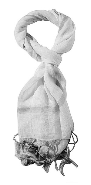 白色丝巾 一年四季随心所欲使用的优雅单品,白色最能显示材质的精致,轻柔的纹路与细腻的质感让它成为衣橱中最具视觉舒适度的配件。