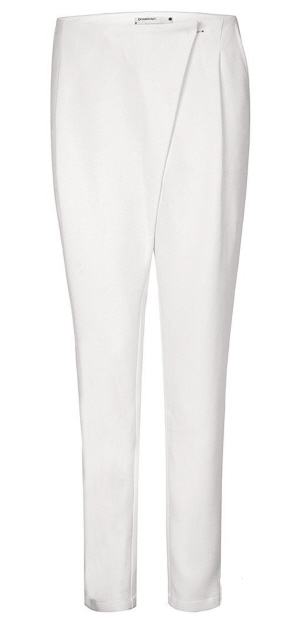 白色窄身裤 今夏白色裤子进入时尚达人的最爱清单,线条干净的窄身裤几乎与任何风格的上装都是很好的搭配伙伴,腰间细节处做不对称处理,析出简约的大牌感觉。