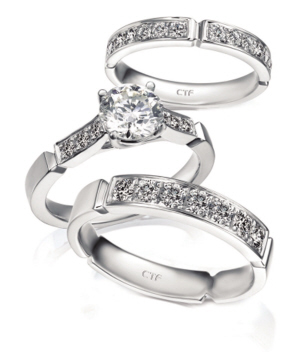 求婚及对戒三指环,灵感来自恋人两手相牵十指紧扣,象征两人一生一世牵手相随,备有K白金、玫瑰金及K黄金以供选择。