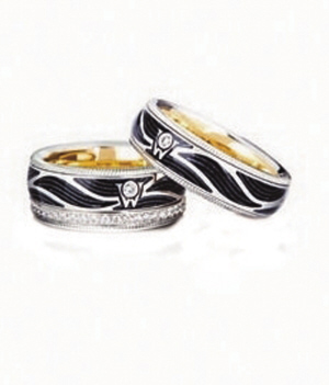 Wellendorff“黑夜之翼”(左)与“天使之力”(右)旋转指环