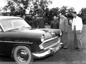 1958年5月5日,由一汽试制的我国第一辆“东风”牌71型小轿车,进京给毛泽东试乘。毛泽东和林伯渠等中央领导在中南海后花园观看并试坐了这辆轿车。