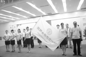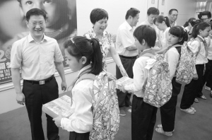本报讯 为助力每一位贫困女孩实现美好的梦想,7月13日,2015年“圆梦女孩志愿行动周口行”启动仪式在周口饭店举行。启动仪式上,有关领导不仅为志愿者颁发了证书,为志愿者队伍授旗(小图),还为太康县圆梦女孩代表赠送了书包和图书(大图)。