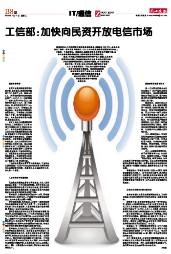 工信部:加快向民资开放电信市场