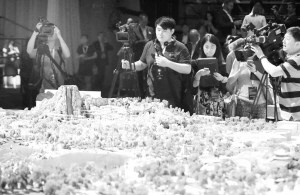 7月15日,媒体记者拍摄上海迪士尼度假区亮点景区模型。