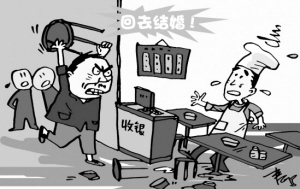 儿子30岁了还没有对象,一对父母从乡下跑到儿子在咸阳经营的快餐店里撵走顾客,阻止其营业。儿子李某无奈,索性贴出“家长逼婚,暂停营业”的告示以示“抗议”。家长很生气,拿凳子把收银台上的电脑砸了。