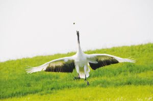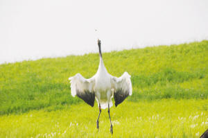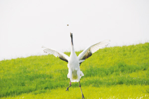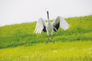 “走过那条小河你可曾听说,有一位女孩她曾经来过。走过这片芦苇坡你可曾听说,有一位女孩她留下一首歌。为何片片白云悄悄落泪,为何阵阵风儿轻声诉说……”当我们的摄影记者朱海龙在现场轻轻地哼起这首歌时,在坡地后方的芦苇荡中,在丰茂的水草里各种鸟类竞相展翅飞翔而来。它们盘旋在空中,或低头俯冲钻进水里衔起水草,或振翅飞翔在碧绿的芦苇荡中,阵阵清脆悦耳的鸟鸣让你不得不被这片神奇的湿地所打动,而丹顶鹤这个美丽的天使,无疑将会成为扎龙湿地上吸引游客的一道最美丽的风景线。