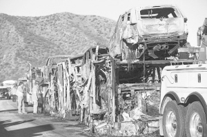 数百名司机眼见火势逼近,不禁惊慌失措,纷纷弃车逃难,更有人吓得大哭起来。45岁的阿莱瓦托打算到拉斯韦加斯旅游,驾车期间发现前方有火舌,赶紧带女儿和外甥等人弃车逃生。他说路上有数百人一同跑上山避难,场面如同灾难电影,“到处都是火”。虽然一行人顺利脱险,但租来的汽车及所有行李均付之一炬。