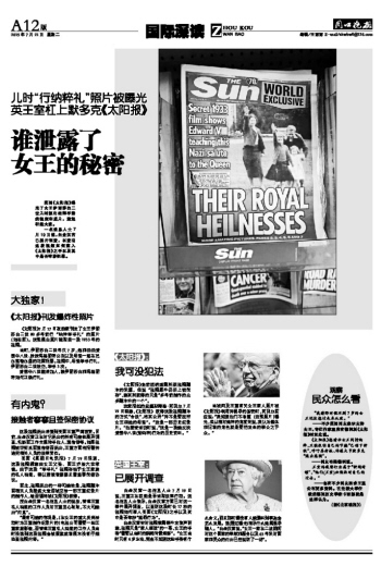 《太阳报》想暗示女王同情纳粹,只能说明自己的节操“已创下新低”,呼吁其老板、传媒大亨默多克“滚出英国”。
