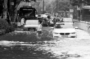 当日,浙江杭州暴雨倾盆。受瞬间强降雨的影响,杭州市中心多个路段被大水淹没,给市民通行造成很大影响。新华社记者 王定昶 摄