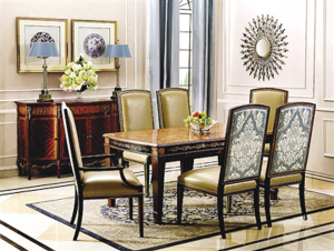 一提起英国,很多人首先想到的就是女王、贵族和绅士,而小餐桌则是英伦精致生活的体现。这个餐厅里充斥着浓浓的英式氛围,餐桌采用了乔治王朝后期流行的上粗下细带槽纹方形腿,结合略带弧度的线条与雅致的木皮贴面,将英式家具在新古典时期的芳容身姿展露无遗。如果再搭配上流光溢彩、贵气不俗的扶手椅,生活就更完美了。在这个餐厅中来一场优雅的下午茶,或许那种贵族的气质就慢慢养成了。