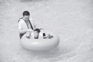 当天上午,小记者和家长们来到位于淮阳县东关龙湖风景区的东方神话游乐园,沙滩漫步、海啸冲浪、水上漂流、激流勇进等水上项目让小记者和家长们玩得乐不思蜀。