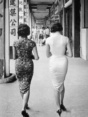 受西方短裙影响,旗袍衣长缩短,袖口相应缩小,而且腰身越发紧绷,即便是保留衣长的旗袍,两边开口也不断升高。