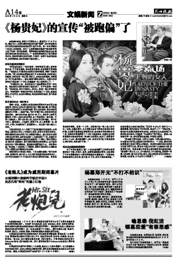 “鲁迅先生说过,一部红楼梦,‘经学家看见《易》,道学家看见淫,才子看见缠绵,革命家看见排满,流言家看见宫闱秘事。’”谈起这几日《杨贵妃》被网友吐槽的境遇,导演十庆感觉有点晕。“网上流传的东西跟这部片子本身的格调,其实有挺大的差距,其实这是一部正剧,特别正,当然也会有趣味,但着眼点一定不在激情戏上。我在拍的时候是点到为止,电影本身的宣传也不是这样一个方向,但偏偏被一些人断章取义了。”