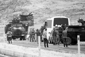 8月2日,在土耳其东部阿勒省,土耳其军方在事发地附近加强警戒。