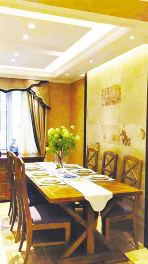 想要知道马炜到底有多细腻,在漂亮的美式餐桌上,他专门选择了透明的花瓶,这样,一家人、亲朋好友坐在这里吃饭时,不会因此挡住视线。这是很多设计注意不到的细节。