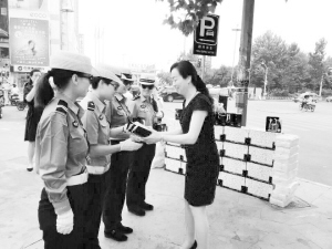 8月5日上午,河南万果园实业集团有限公司员工带着白糖、矿泉水、防晒霜、遮阳伞等价值1.3万元的物品,前往多个路面执勤点,慰问了坚守在一线的周口市公安局七一分局交巡防大队等执勤交警。晚报记者 张志新 摄